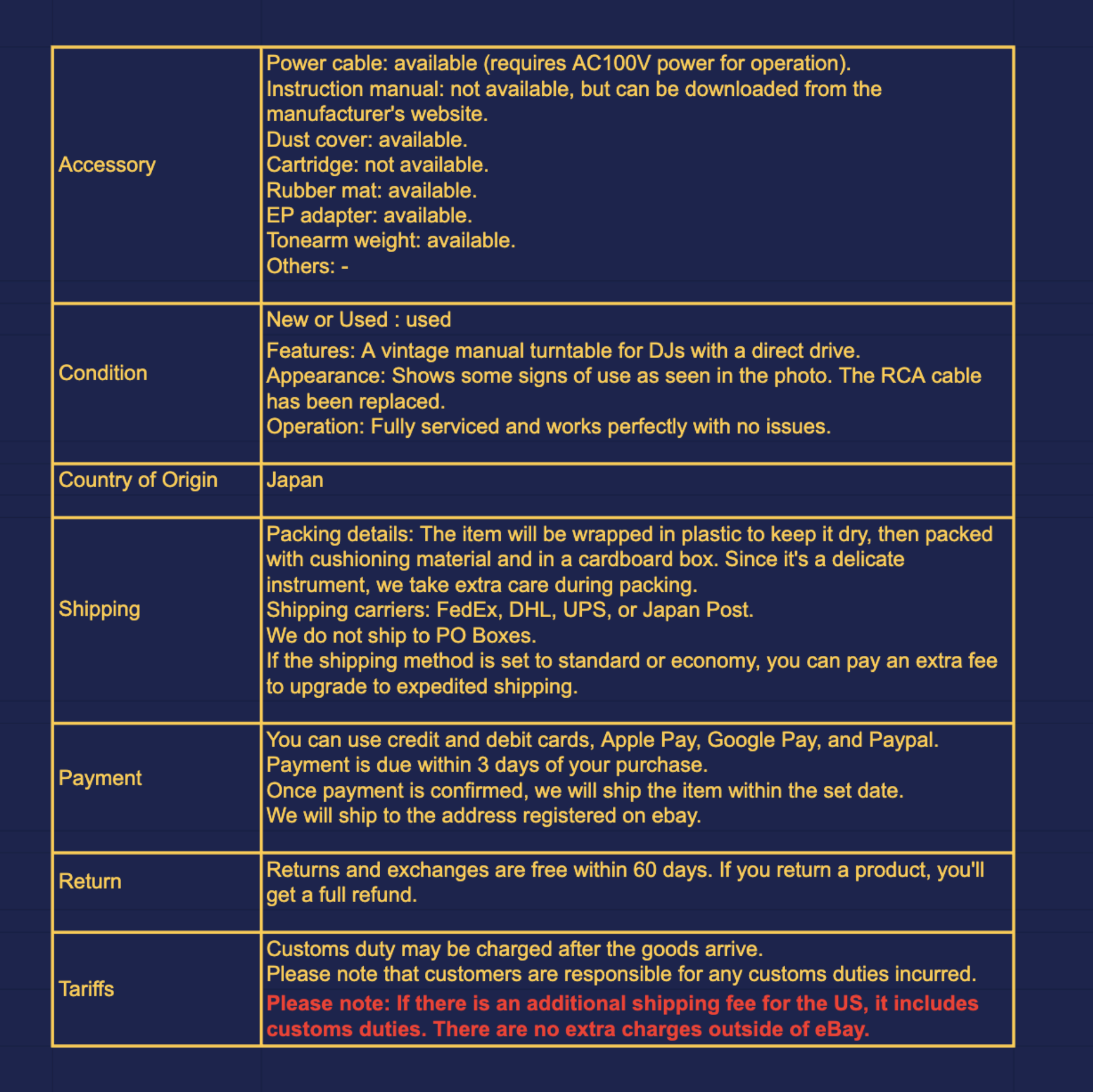 Appearance: Shows some signs of use as seen in the photo. The RCA cable has been replaced.